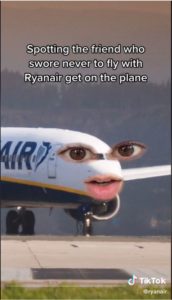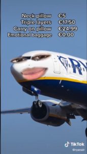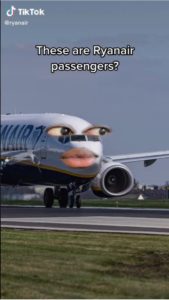 The most iconic Ryanair movement came in the form of imposing eyes and a mouth onto a Ryanair aircraft; an idea that is regularly used amongst Gen Z users of TikTok, but less so by corporations. The idea was made far more humorous when the airline used the trend to take a tongue-in-cheek mocking stance even making fun of their own services.