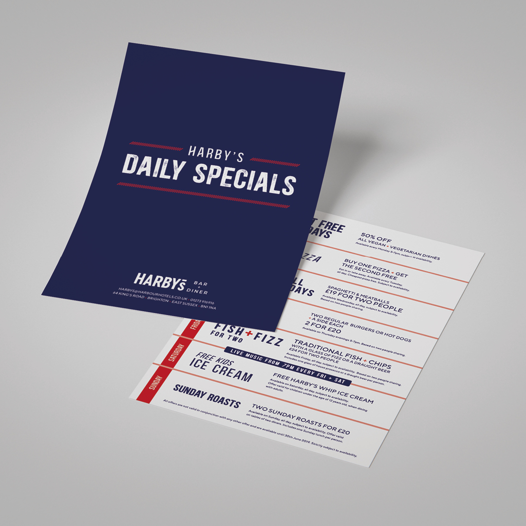 With three South Coast hotels already acquired, Harbour Hotels approached us to work with them to build a brand capable of adding a further 10 properties to their portfolio. A new core identity to appeal to a broader, more aspirational audience. This was quickly followed by the creation of identities and subsequent roll out of promotions and menus for the hotels’ stylish restaurants and bars – The Gate, The Long Bar, The Gold Bar, Harbour Café and HarBar on 6th.