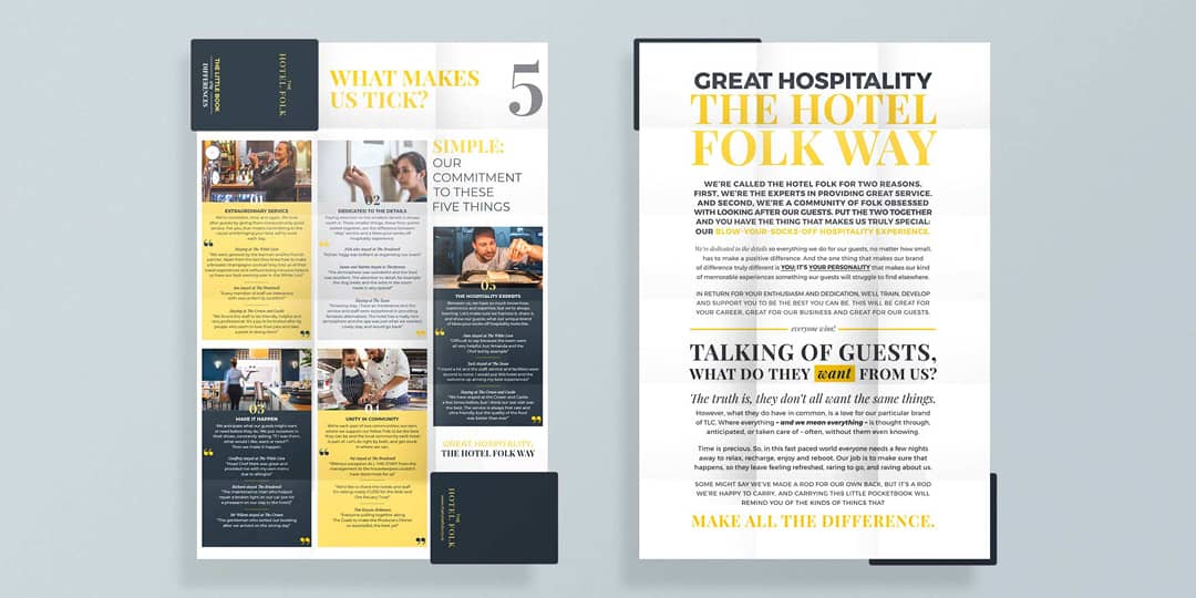 A comprehensive and cohesive rebrand redefining a collection of hotels that guests want to visit and that staff aspire to be a part of.
